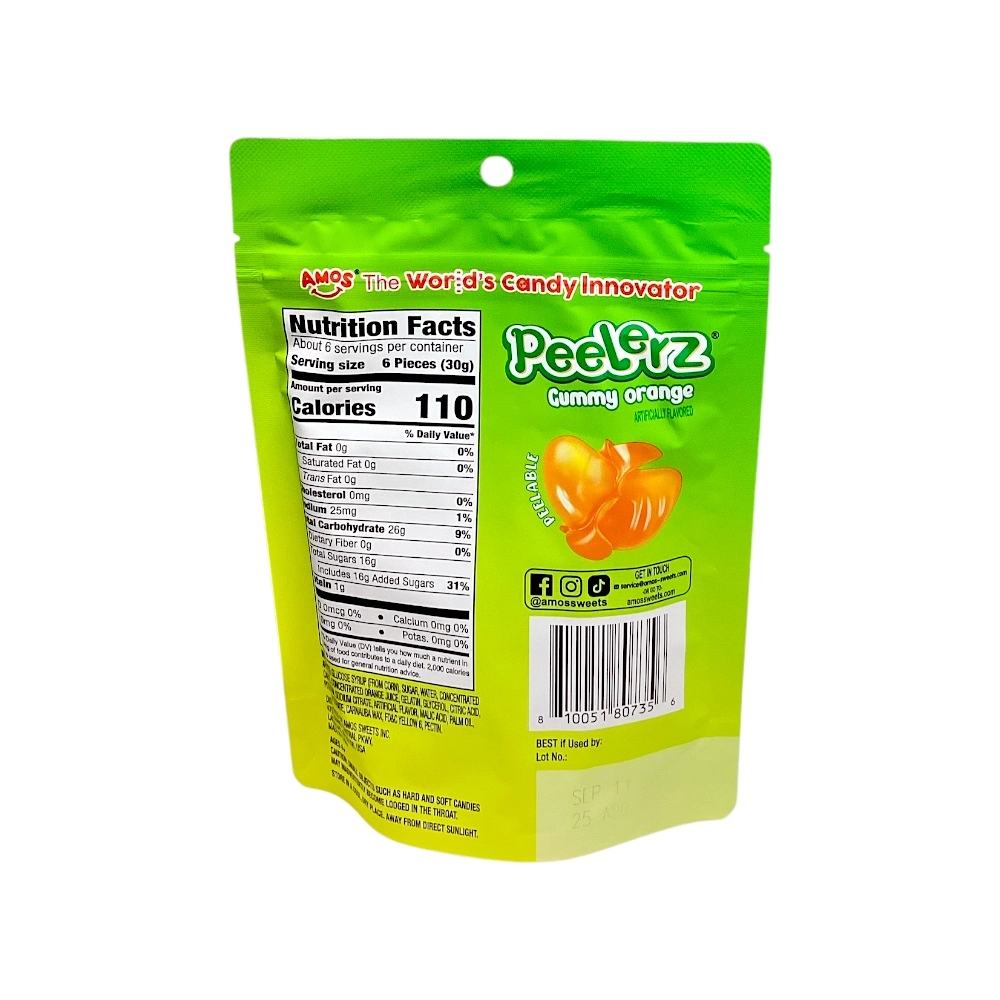 Delicious orange-flavored chewy candy that’s fun to peel and eat.