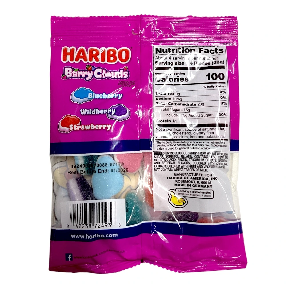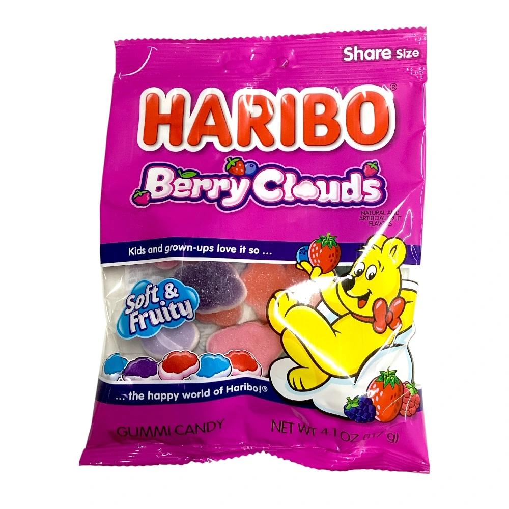 Soft and chewy berry-flavored gummies shaped like clouds.