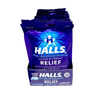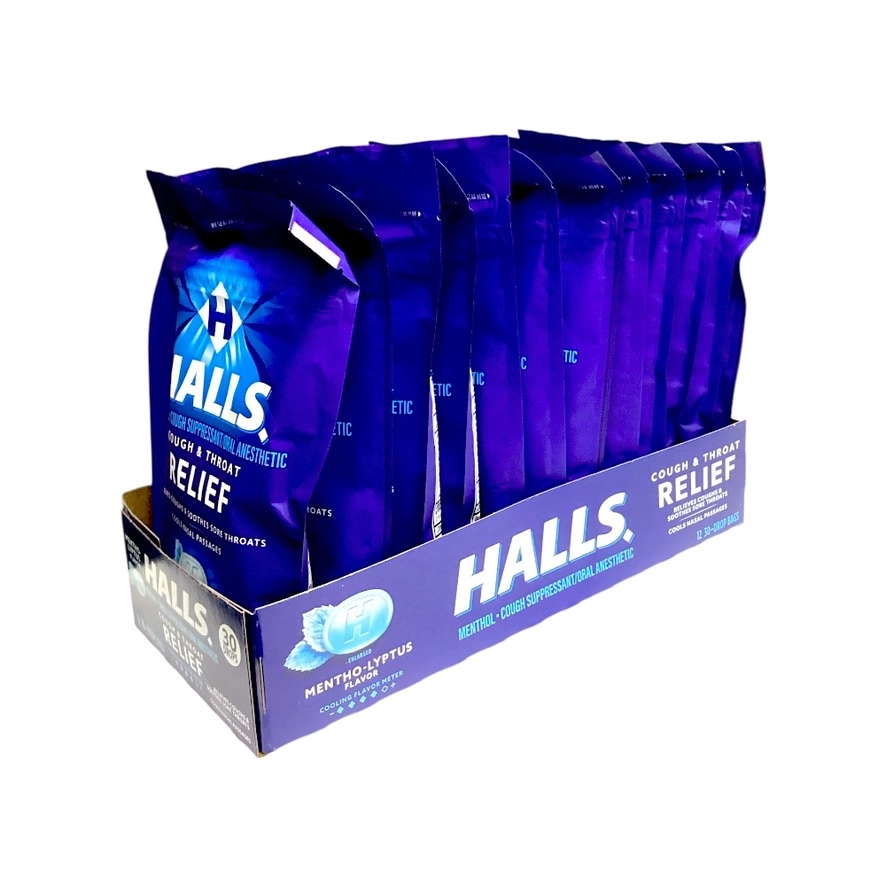 Classic Halls Mentho-Lyptus lozenges in convenient 30-piece bags — perfect for on-the-go enjoyment.