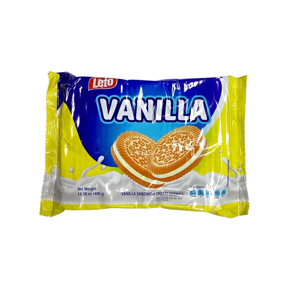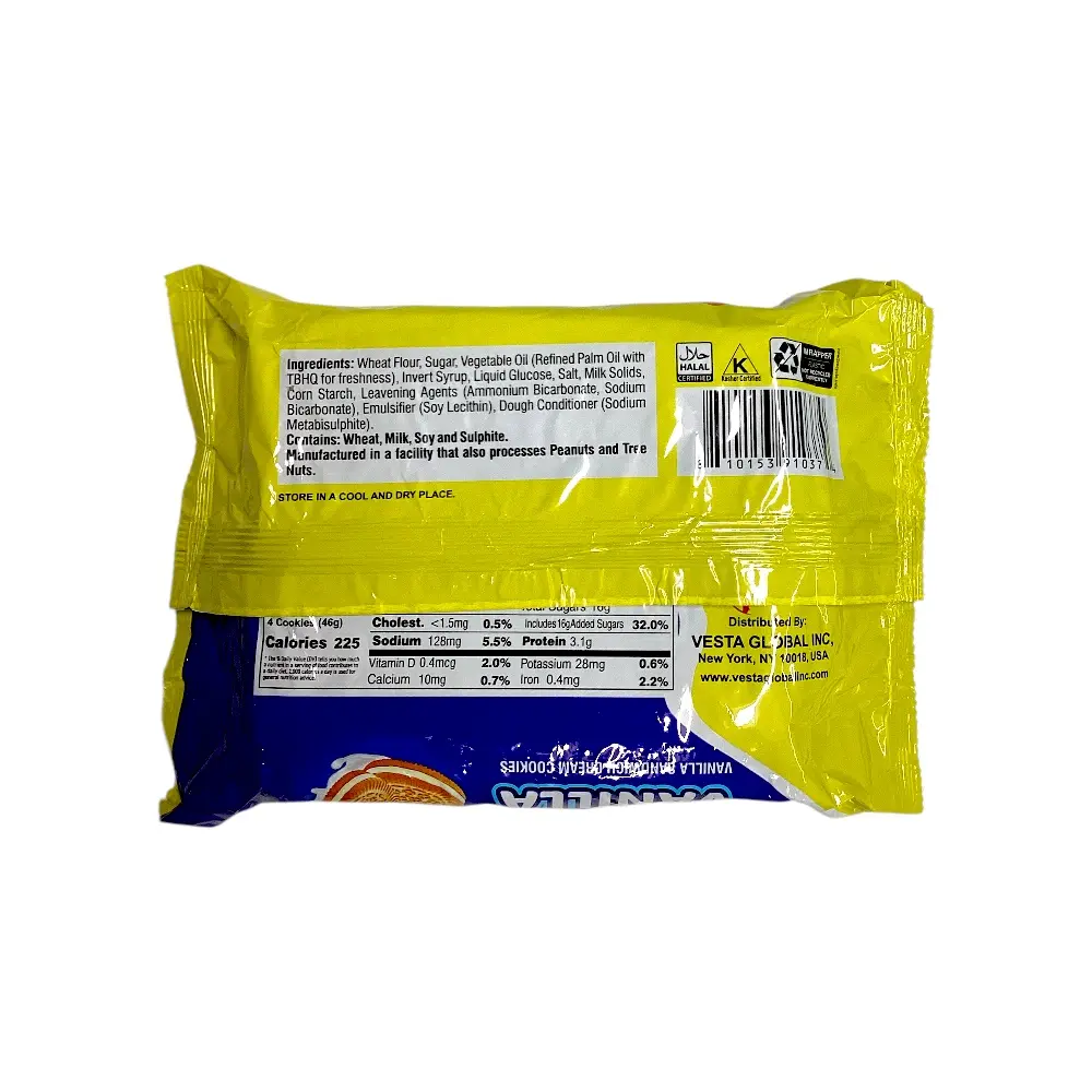 Crispy vanilla cookies filled with smooth vanilla cream, perfect for sharing or enjoying anytime.