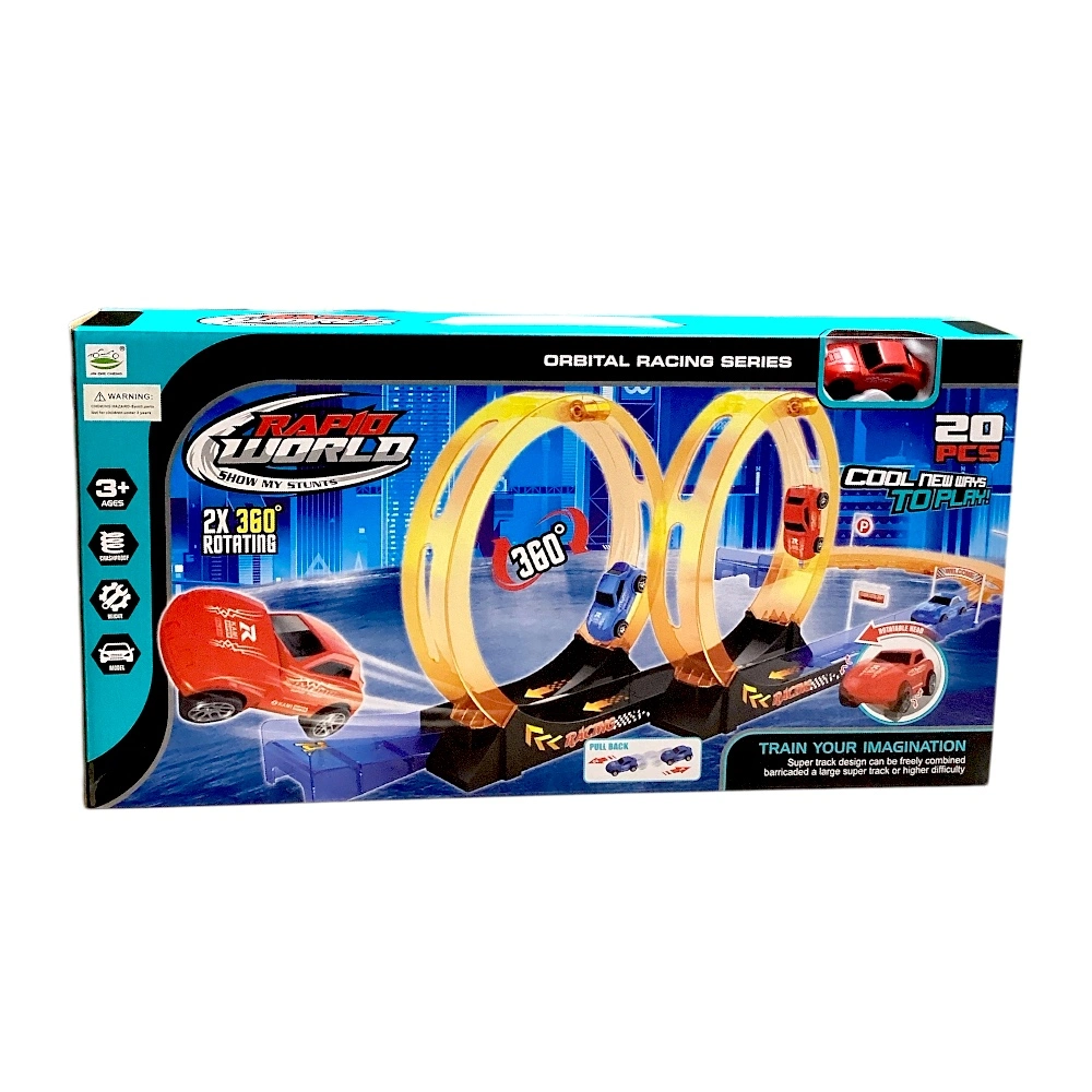 Includes a racing track with loops, curves, and accessories for exciting play.