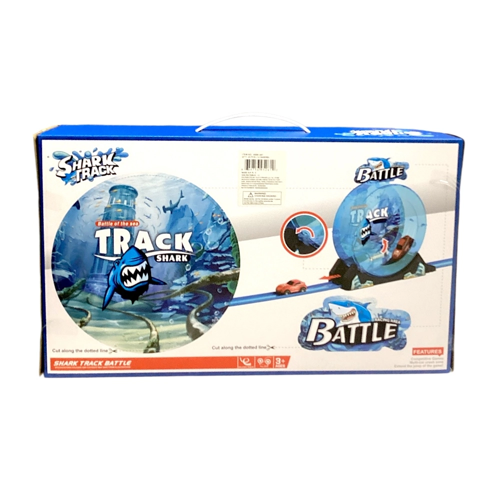 • Includes a race track with shark-themed obstacles for thrilling play.