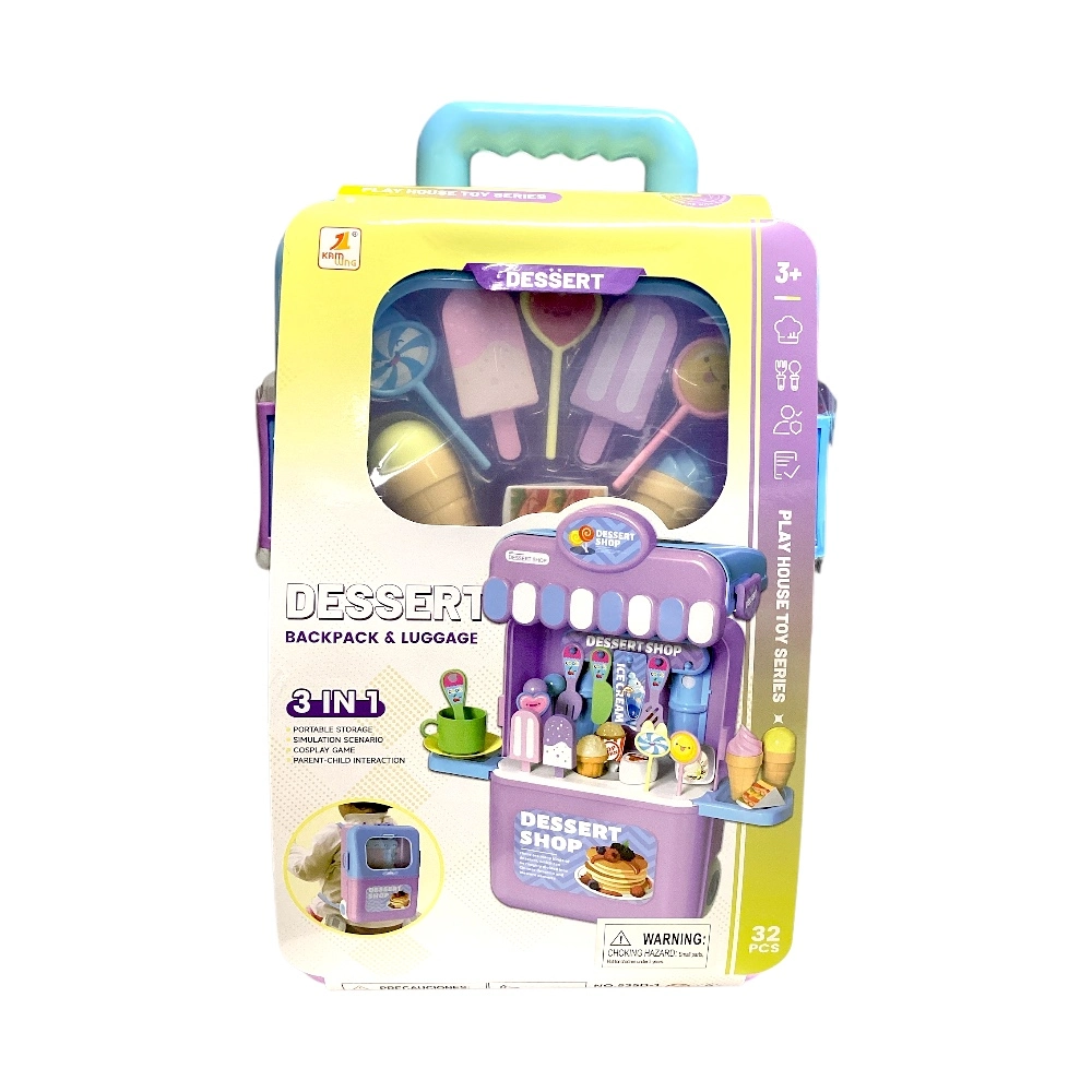 Sweet fun on the go! This 3-in-1 Dessert Shop Play Set transforms into a backpack, luggage, or mini dessert stand. Includes colorful toy desserts and utensils for endless pretend play.