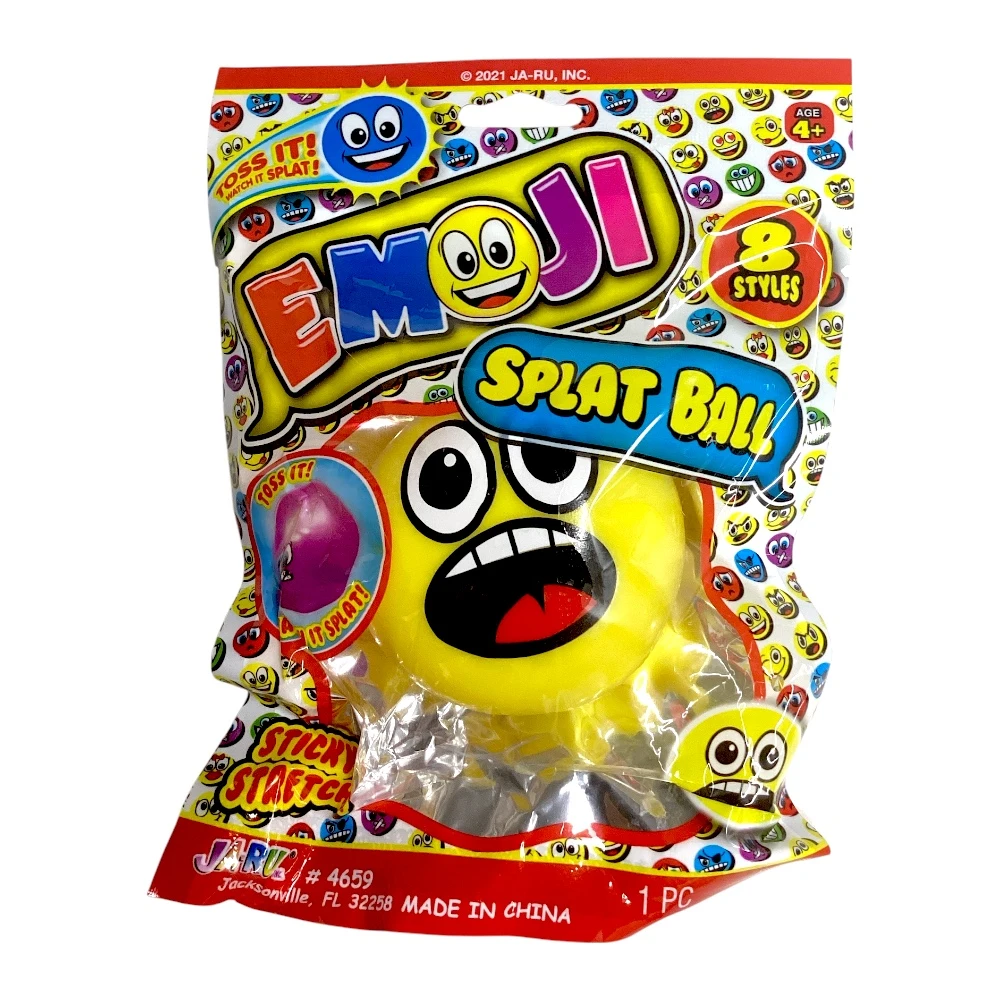 Soft and squishy splat toy with fun emoji designs.