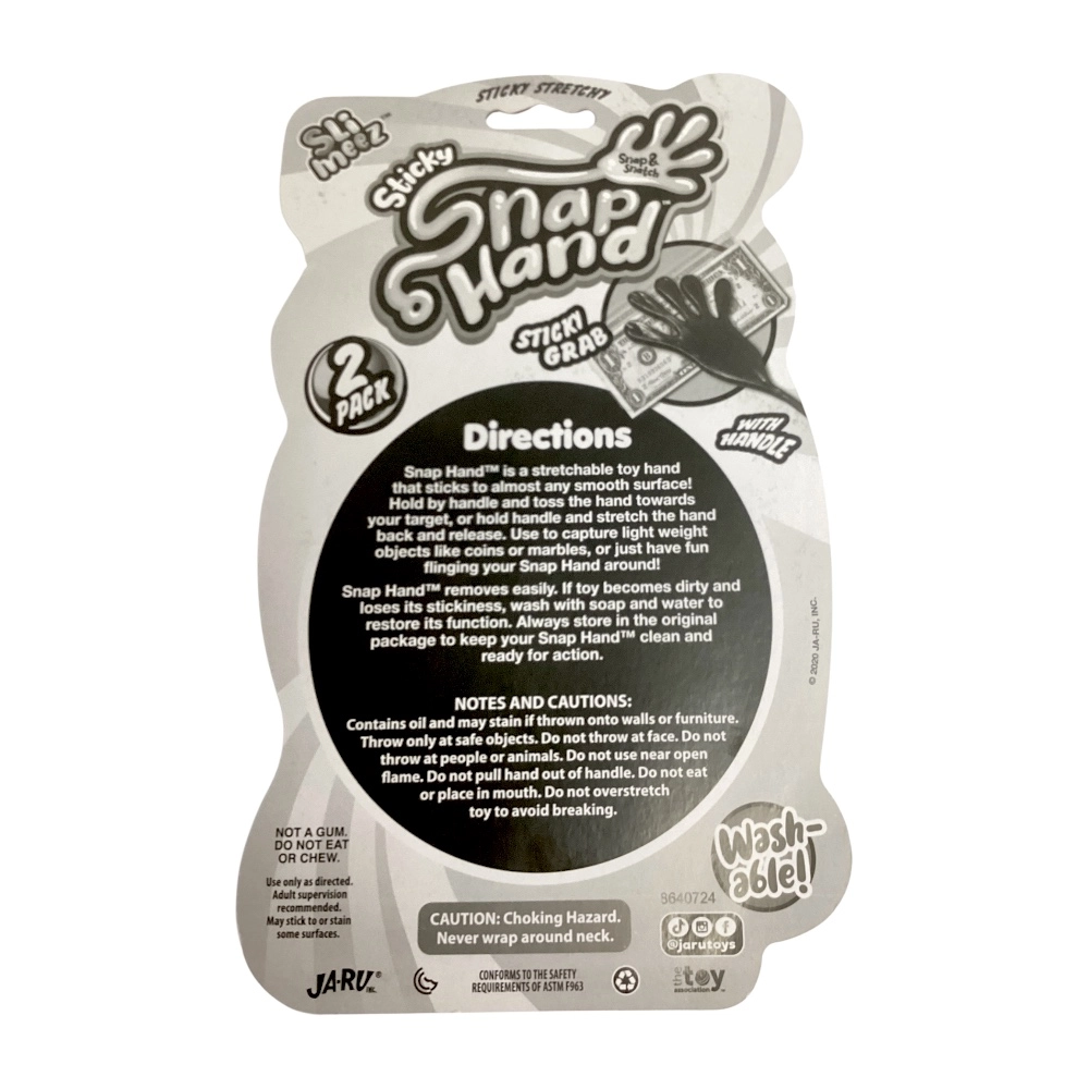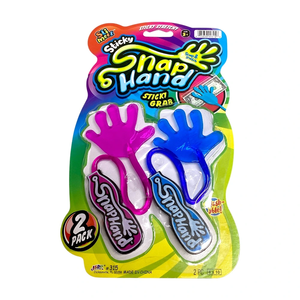 Features a sticky snap hand for grabbing, slapping, and interactive play.